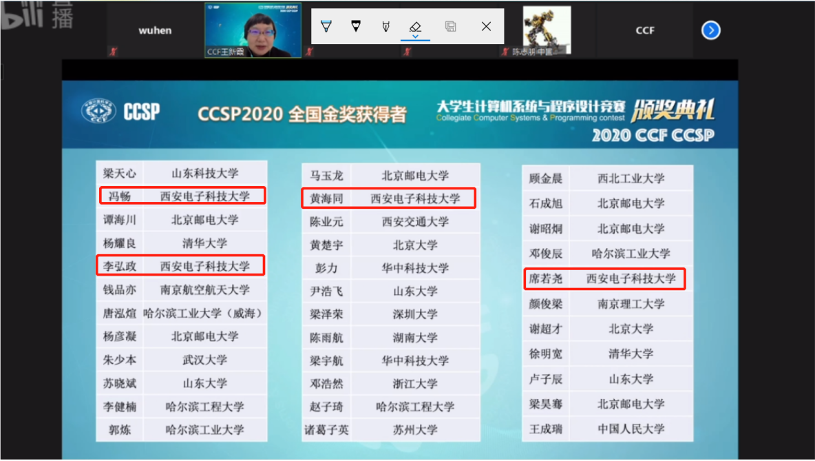 (通讯员 陈龙)2020年全国大学生计算机系统与程序设计竞赛(2020 CCF CCSP)于10月17日进行,beat365亚洲体育官方网站派出29名选手参加,经过六个小时不间断鏖战,最终全国总决赛获得四金一银八铜,团体排名位列全国第八,取得历史最好成绩;西北赛区获得五金八银十三铜,团体排名位列西北区域第二。本次大赛全国66所高校同时在线下举行,分为西北、华北等七个赛区,共有1041名选手参加。