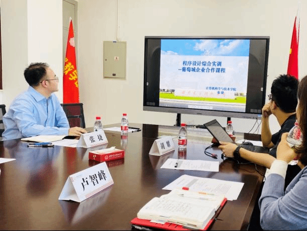会议开始,双方相互介绍了本次参会人员并回顾了前期合作对接的情况,然后由中心主任杨力和葡萄城总监卢智峰签署了产教共建协议。