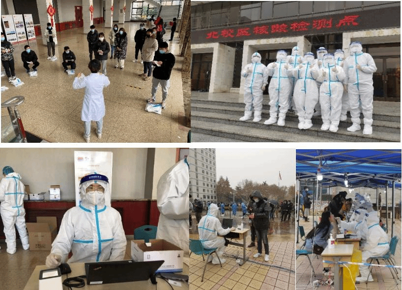 为支援工作人员,高效有序做好北校区教学区全员核酸检测,学院第一时间组建研究生疫情防控志愿者队伍。辅导员一呼百应,短短时间就有169名研究生志愿者报名,其中有党员132人。23日清晨,32名同学穿上防护服,经过培训后变身最可爱的“大白”,在寒冷的室外辅助工作人员进行检测工作。南校区抗疫一线,本科生党员同学也冲在前面。在21日的全员核酸检测工作中,26名志愿者同学穿上防护服协助工作人员,其中党员有24人。因为检测任务较重,第一组志愿者从早上9点多开始工作,不吃不喝坚持战斗到下午3点。同学们却都说“不辛苦,其他人更辛苦”。