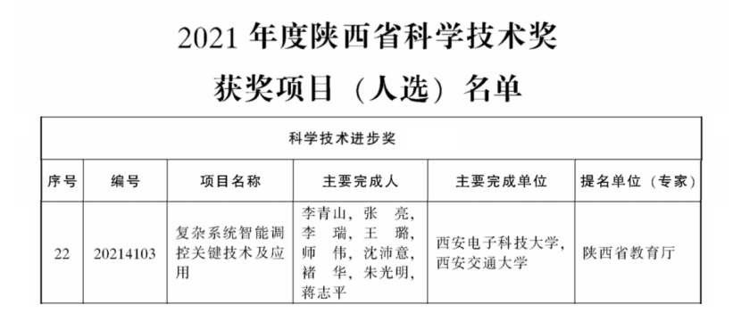(通讯员 齐富)近日,《陕西省人民政府关于2021年度陕西省科学技术奖励的决定》和《国家知识产权局关于评选第二十三届中国专利奖的通知》发布,由beat365亚洲体育官方网站李青山教授牵头的项目“复杂系统智能调控关键技术及应用”荣获陕西省科学技术进步奖二等奖,沈玉龙教授团队的发明专利“一种多域分层的多域物联网平台及多域管理方法”预获中国专利优秀奖,是学校唯一入选本届中国专利奖的专利。