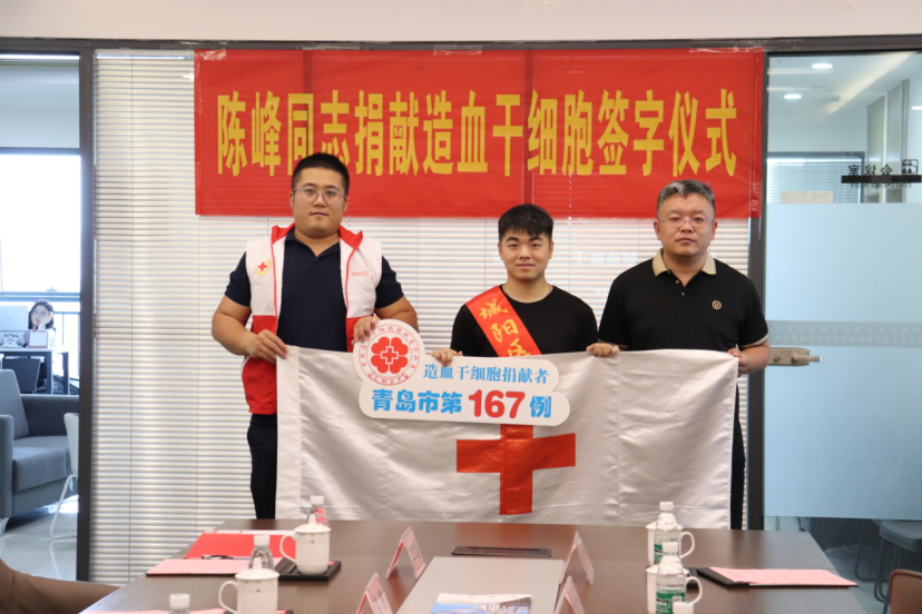 (通讯员 于京艳 同榛)季夏之时,沐光而行。2023年6月14日第二十个世界献血者日当天,beat365亚洲体育官方网站硕士2021级软件工程专业陈峰同学确定如期参加造血干细胞捐献,成为青岛市第167例、城阳区第24例造血干细胞捐赠者,为千里之外的白血病患者传递“生命之光”。6月21日,陈峰同学联培所在的beat365亚洲体育官方网站青岛计算技术研究院与城阳区红十字会、城阳区城阳街道办事处联合举办“陈峰同学赴青岛市中心医院捐献造血干细胞欢送仪式”。