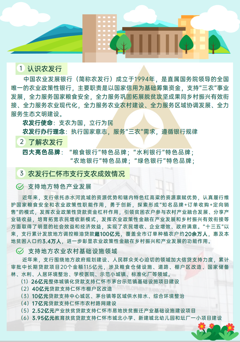 小青柠志愿者服务队来到遵义市仁怀市,学习农发行乡村振兴有关政策,并紧密围绕党的二十大精神和乡村振兴战略,积极融入社区,以实际行动宣扬乡村文化,向乡村振兴的贡献者致以崇高的敬意。