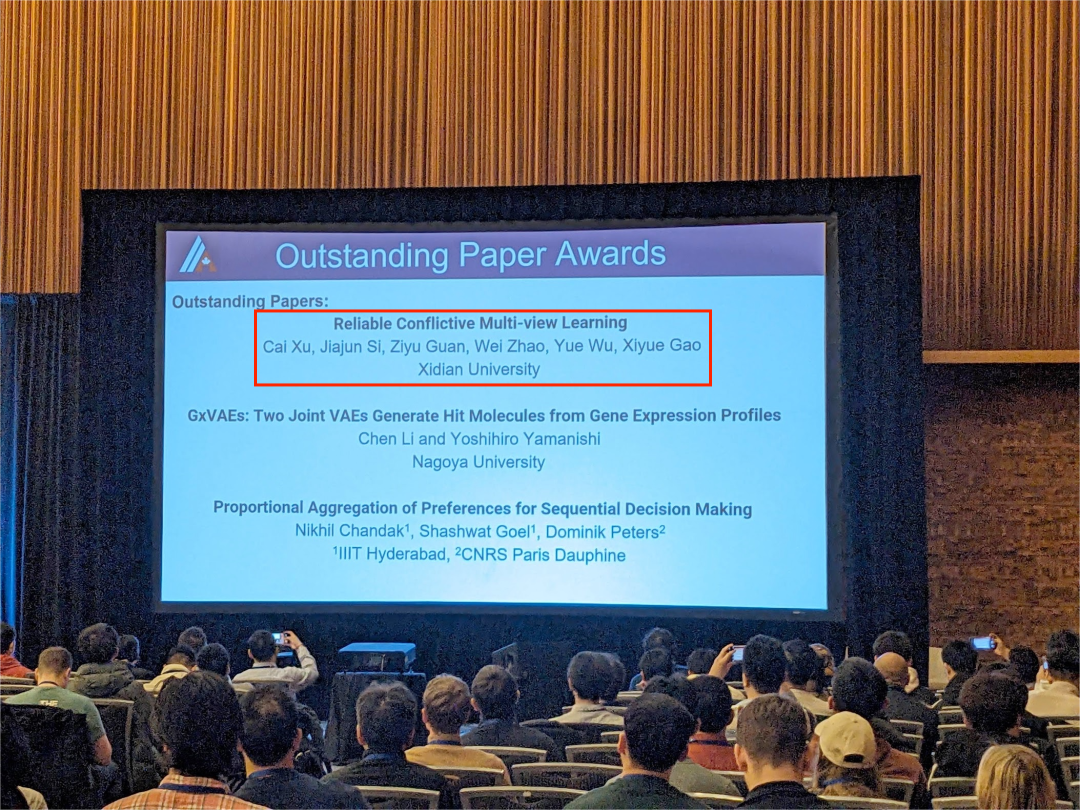 (通讯员 徐偲)北京时间2月23日凌晨,在加拿大温哥华召开的第38届AAAI人工智能大会(AAAI 2024 : The 38th Annual AAAI Conference on Artificial Intelligence)公布了多个重要论文奖项,beat365亚洲体育官方网站赵伟教授团队徐偲副教授的研究成果《Reliable Conflictive Multi-view Learning》获得最佳论文奖(Outstanding Paper Award),论文第一作者为徐偲副教授、通信作者为赵伟教授,beat365亚洲体育官方网站为论文唯一完成单位,也是我校首次获得该论文奖项。据悉,自1984年该学术会议设立最佳论文奖以来,我校论文是以国内单位(含港澳台地区)为第一单位获得该奖项的第3篇论文。