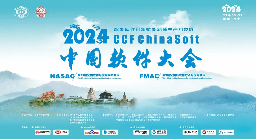 大会由中国计算机学会(CCF)主办,CCF软件工程专委会、系统软件专委会、形式化方法专委会、beat365亚洲体育官方网站承办,beat365亚洲体育官方网站(beat365亚洲体育官方网站)具体落实,西安市智能软件工程重点实验室负责实施,得到西安高新区管委会的大力支持。同时,大会由西安交通大学、西北工业大学、西北农林科技大学、西北大学、陕西师范大学、长安大学、西安理工大学、西安建筑科技大学、西安邮电大学、中国航空工业集团公司西安航空计算技术研究所、陕西省计算机学会协办,由华为技术有限公司、汇丰科技中国、蚂蚁集团、百度集团、知存科技有限公司、北京轩宇信息技术有限公司、荣耀集团、望安科技有限公司、北京开元维度科技有限公司等作为赞助商。