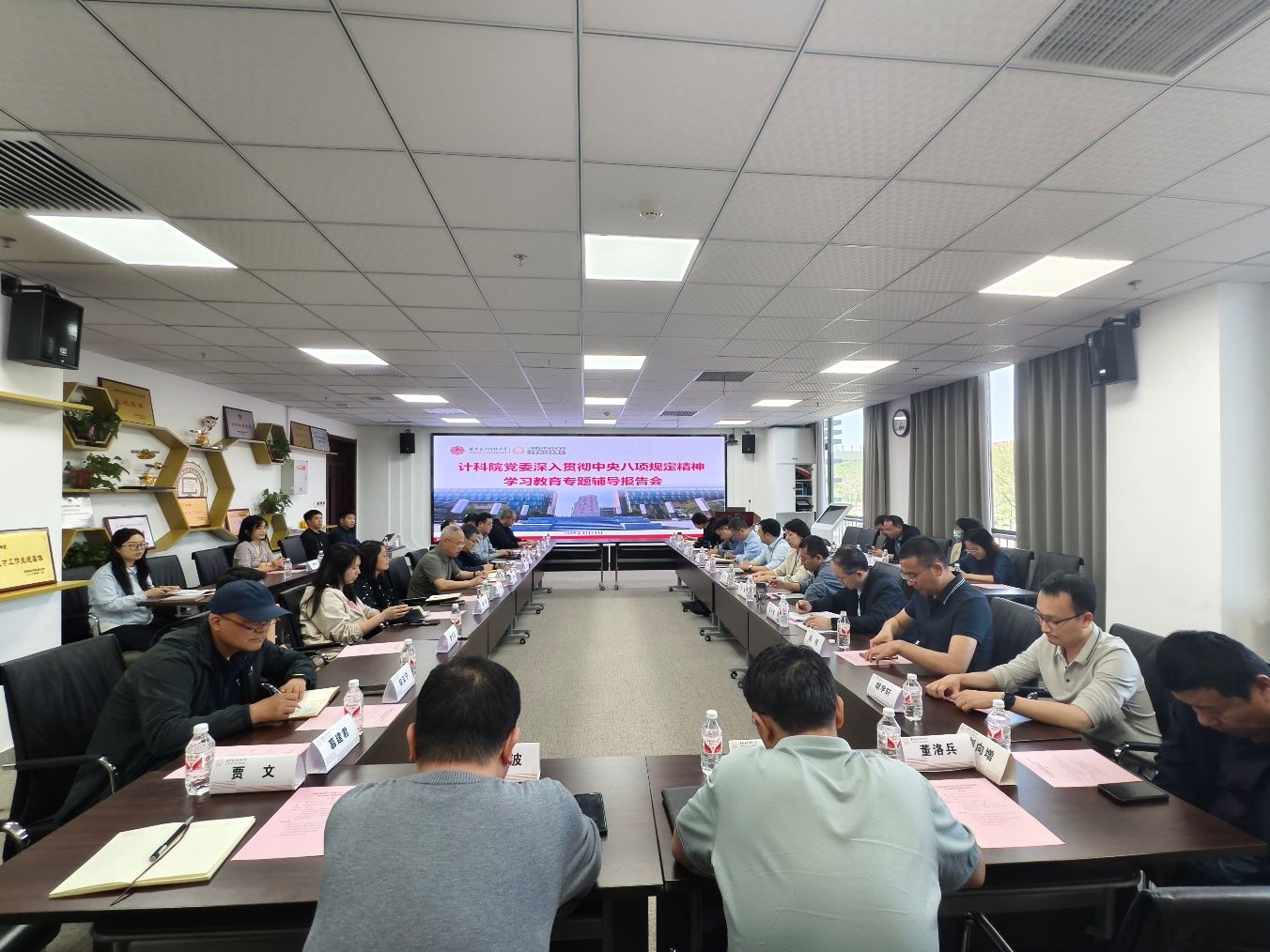 (通讯员 冯雨晴)为推进深入贯彻中央八项规定精神学习教育走深走实,4月14日下午,beat365亚洲体育官方网站党委在南校区网安大楼A1区223会议室召开深入贯彻中央八项规定精神学习教育专题辅导报告会,邀请校纪委副书记、监察处处长靳珠作专题辅导报告。校纪委相关负责同志,学院两委委员、教职工党支部书记、基层系所室负责人、在研重点、重大项目及重要国防项目负责人等40余人参加,会议由学院党委书记李青山主持。