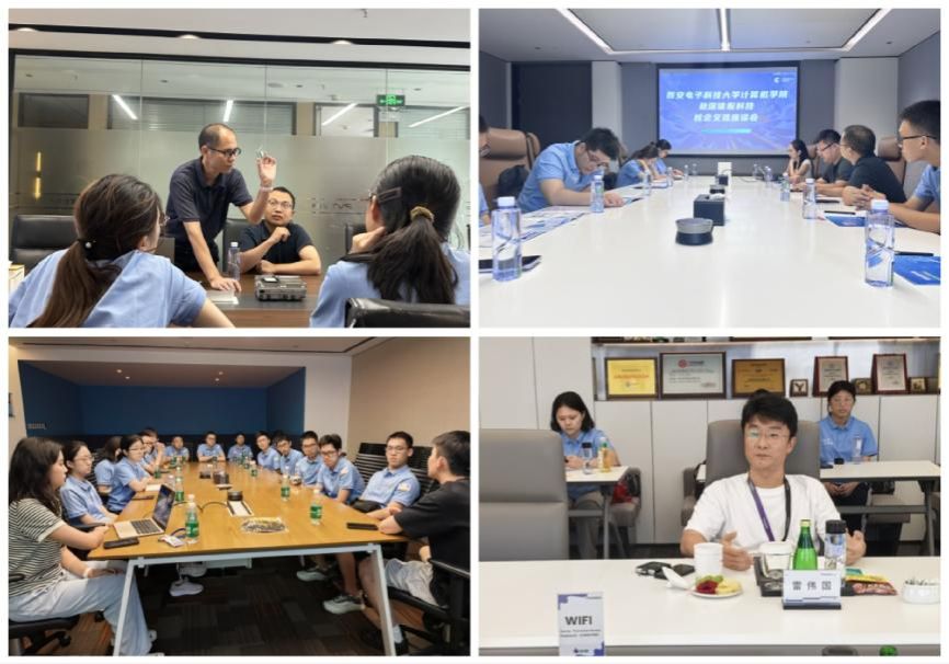 实践队以实地参访的形式深入了解企业的运营状况、技术创新进程以及人才引进与科研合作上的具体需求。在鸿合科技股份有限公司,实践队参观了智能化组装及调试产线,详细了解了企业的发展历程、市场服务体系、软硬件生态建设等方面的情况,在与企业的座谈中,院企双方就推动科技创新策略、A赋能教育教学与日常管理、人才培养机制优化以及校企合作的切入点进行了广泛讨论;在金山办公,实践队了解了企业的发展历程及人才需求情况,依托教育部就业育人项目和校企联合培养展开深入交流,详细探讨了双方进一步的合作内容及形式。