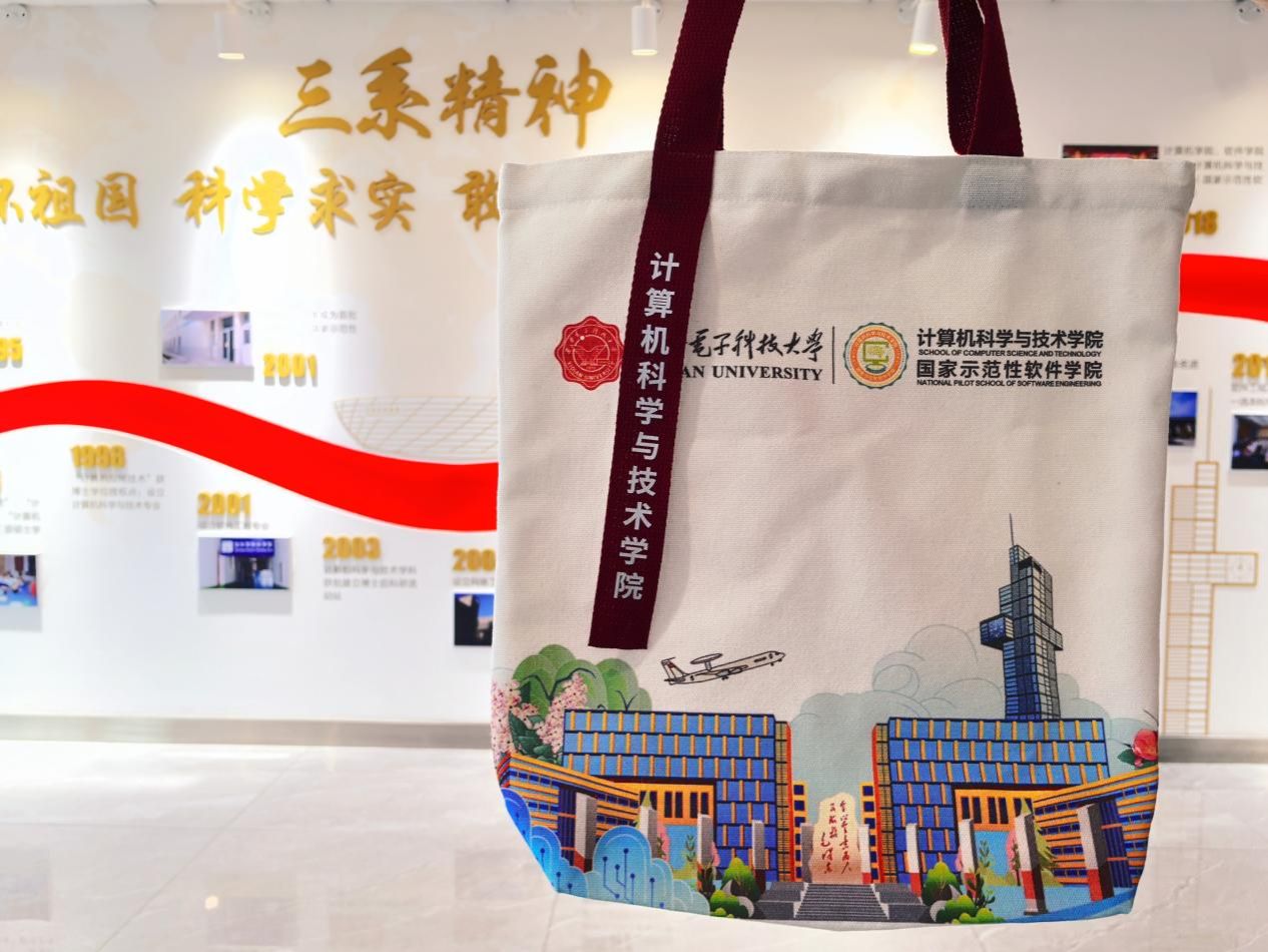 其中,设计简约大方的校徽,是西电学子身份的象征,佩戴之时便让新生直观感受到归属感;《新生指南》与《迎新手册》则如同“研途说明书”,帮助新生快速熟悉校园环境、明晰研究生阶段的学习生活重点;尤为特别的是,学院专属设计的“三系精神”主题笔记本与帆布袋,将学院“三系精神”的学术品格与精神内核融入设计,兼具实用性与辨识度,既是新生日常使用的贴心物件,也是学院精神传承的流动载体。