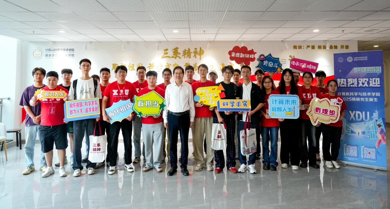 中午,校长高新波一行来到学院报到点,详细了解迎新工作流程和新生报到情况,与新生们亲切交流,细致询问大家的学习生活安排和初入校园体验,并与迎新志愿者们亲切合影留念。