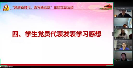 最后,学生党员代表分享了自己学习关于政府工作报告重点和习近平总书记的重要指示精神的感想。吴敏达提到疫情期间我国着重稳定经济增长,发布减税、延期贷款等经济稳定措施,体现了国家的强大和以人为本的思想。苗凯斌谈到国家面对经济负增长,大规模失业问题,提出生存问题大于增长问题,体现了国家将民生作为最大的政治。李迎迎说到国家的强大不仅体现在经济增长快速,还体现在敢于在灾难面前放下一切,为生命让路,以人民至上。李尉铭就报告在肯定政府取得成果的同时也指出不足的问题,提出我们在平时的学习生活中也应善于提出问题,解决问题。贺同庆提出报告中处处体现着国家对于人民的关怀,将人民生命放在首位,时刻考虑人民的需求。冯夫腾就报告中提到的“在危机中遇新机,于变局中开新局”,提出我们作为青年党员,不能害怕困难,要时刻践行为人民服务的思想,为国家奉献自己的一份力量。