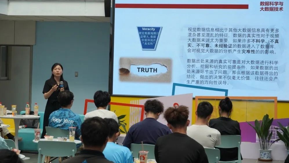 谢琨副教授为同学们分别介绍了数据科学以及大数据技术的基本内容,说明了计科院数据科学与大数据专业的教学目标。她以视觉大数据为例,让同学们生动地认识到了生活中每日产生的海量数据,使同学们更直观的了解了大数据技术的应用场景。她指出学院致力于培养“数据科学家”与“数据分析师”,希望感兴趣的同学们积极参与学习实践,努力成为未来国家所需要的稀缺人才。