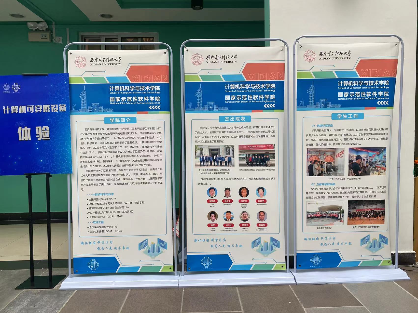 为提高同学们对计算机大类专业的认知,八月初,学院即着手准备在海棠九号楼计算机大类迎新现场进行展示,包括十一张文化展板布置、实践体验区块布置,向新生介绍学院基本情况,营造良好的计算机专业文化氛围。