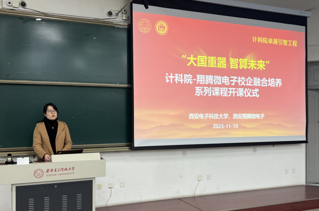 杨敏副处长代表本科生院对本次活动的开展表示热烈祝贺,对翔腾微电子对于学校卓越班建设的支持表示感谢,并简要介绍了以“六卓越一拔尖计划”为代表的学校特色培养班体系,并强调卓越班尤其注重校企联合培养与学生实践能力培养。杨敏指出,计科院与翔腾微电子本次联合开展的校企融合系列课程是践行校企联合人才培养体系构建的重要举措,希望可以借助此次活动积累卓越人才培养的新经验,贡献卓越班建设的新案例。