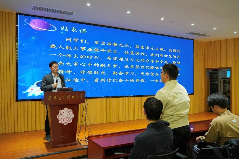 讲座最后,张毅对同学们提出殷切期望,希望同学们能够将个人“小我”融入国家“大我”,以国家事业为奋斗目标,在求知路上勇攀高峰,在实践之中锤炼本领,扎实学好计算机专业知识,践行 “四特精神”,努力成长为胸怀祖国、科学求实的杰出人才,助力中国载人航天事业逐梦九天。