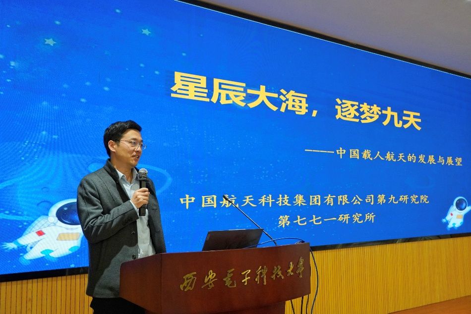 讲座伊始,张毅以载人航天的重大意义为切入点,向同学们全面介绍了我国载人航天工程八大系统,并以1992年9月21日中国载人航天工程启动为起点,简要梳理了我国载人航天“三步走”的发展历程。他指出,中国航天事业之所以能行稳致远,离不开各团队在理论研究、工程实践领域持续发力。他们在各自岗位上拼搏奉献,推动中国航天稳步驶向星辰大海。