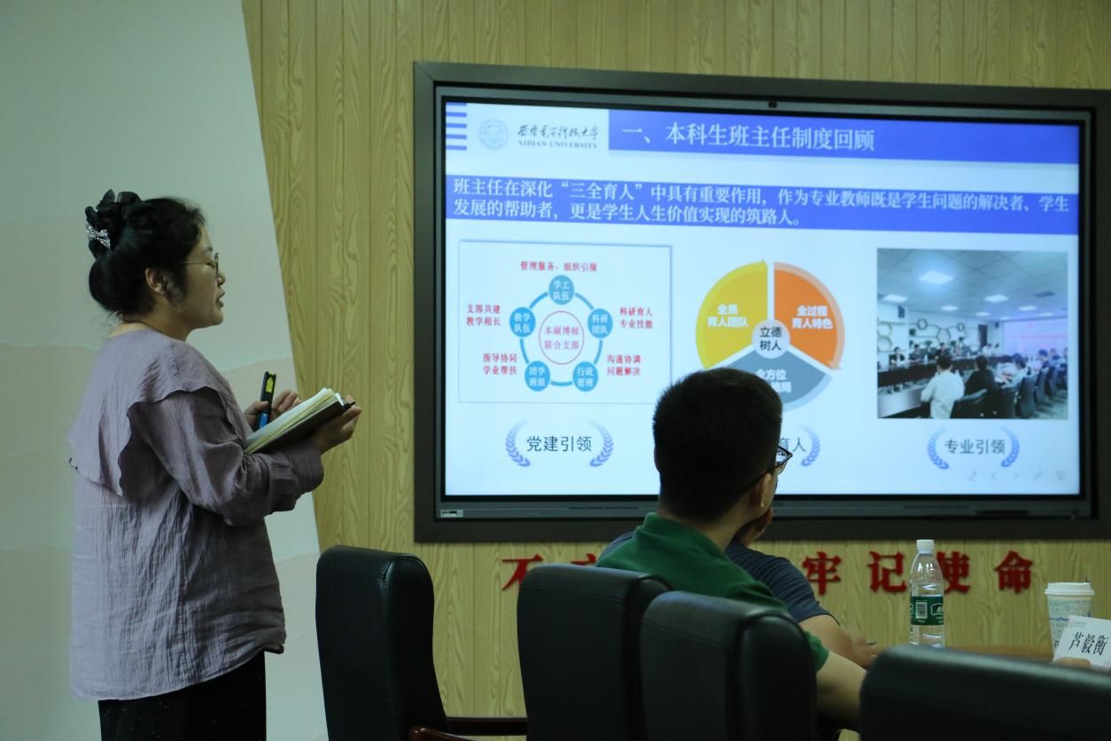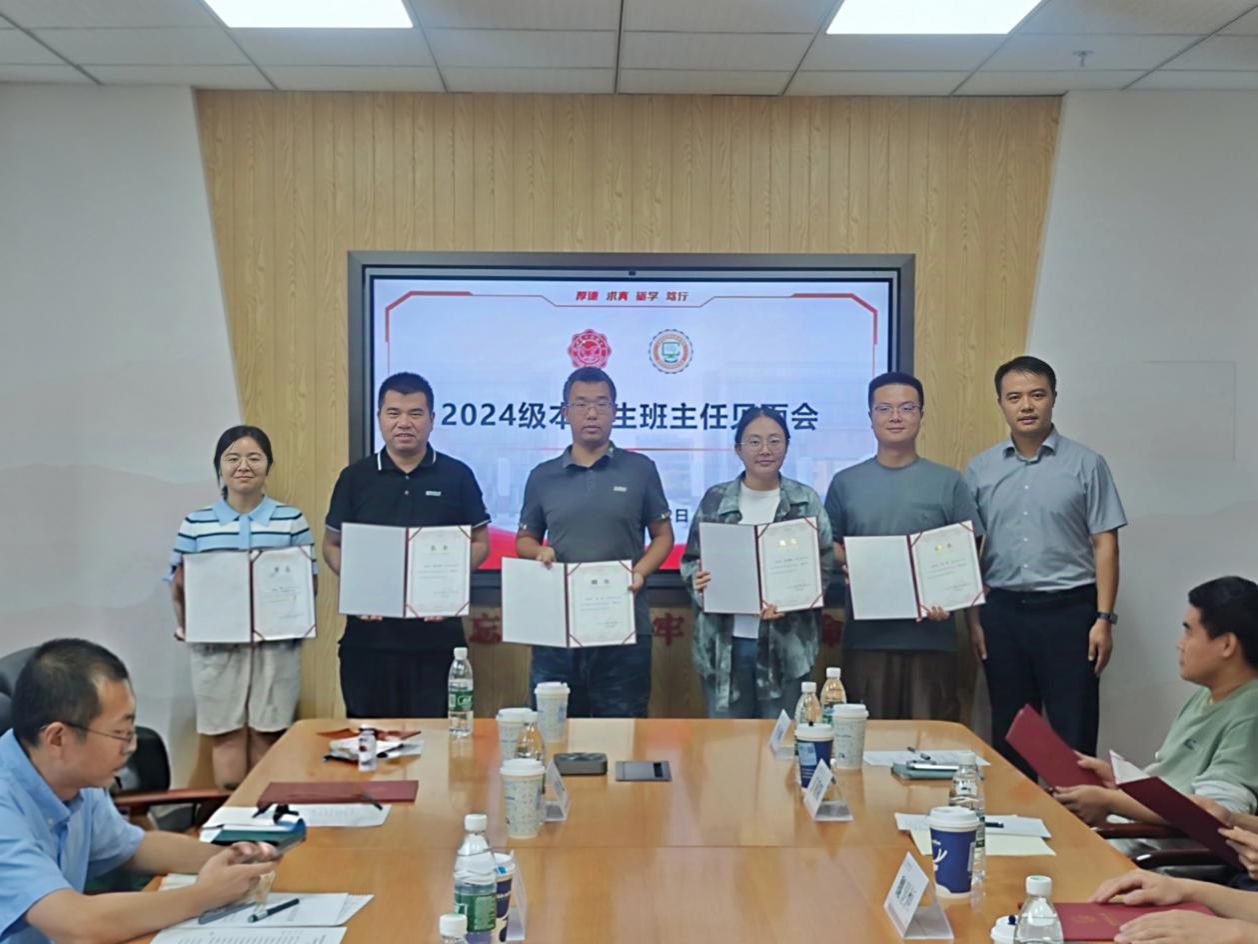 随后,学院相关分管领导为2024级本科生班主任颁发聘书。辅导员艾菲结合2023级本科生班主任工作开展的优秀经验,详细介绍了“1+7”工作模式及相关兄弟院校及学院实施情况,提议各位老师从学生需求、课程安排、专业背景等方面分级分类做好学业指导、生涯引领、班级建设工作。黄成龙最后针对各专业总体课程安排、大一阶段学情分析、学生阶段性成长需求进行了补充说明和强调。会后,各专业班辅导员与班主任进行深入对接,为后续开展“同上一堂课”活动奠定了坚实的基础。