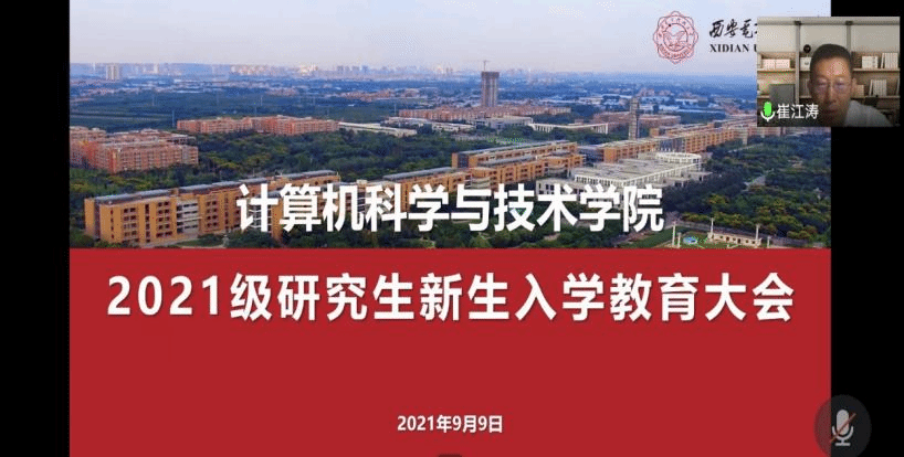 执行院长崔江涛首先代表学院欢迎2021级研究生新生加入beat365亚洲体育官方网站大家庭。随后,他从西电的历史沿革和学院的务实学风出发讲述了我院在人才培养、学术领域、国家发展方面所作的突出贡献。他结合学院人才培养和学科建设,分享了对新发展理念“创新”、“绿色”、“共享”的认识和体会,勉励新生切实增强个人科研创新能力、可持续发展能力、团结协作能力,坚定理想信念,树立道德情操,将个人职业发展与新时代历史使命相融合,做一名“胸怀国之大者”,为实现中华民族伟大复兴中国梦贡献力量。