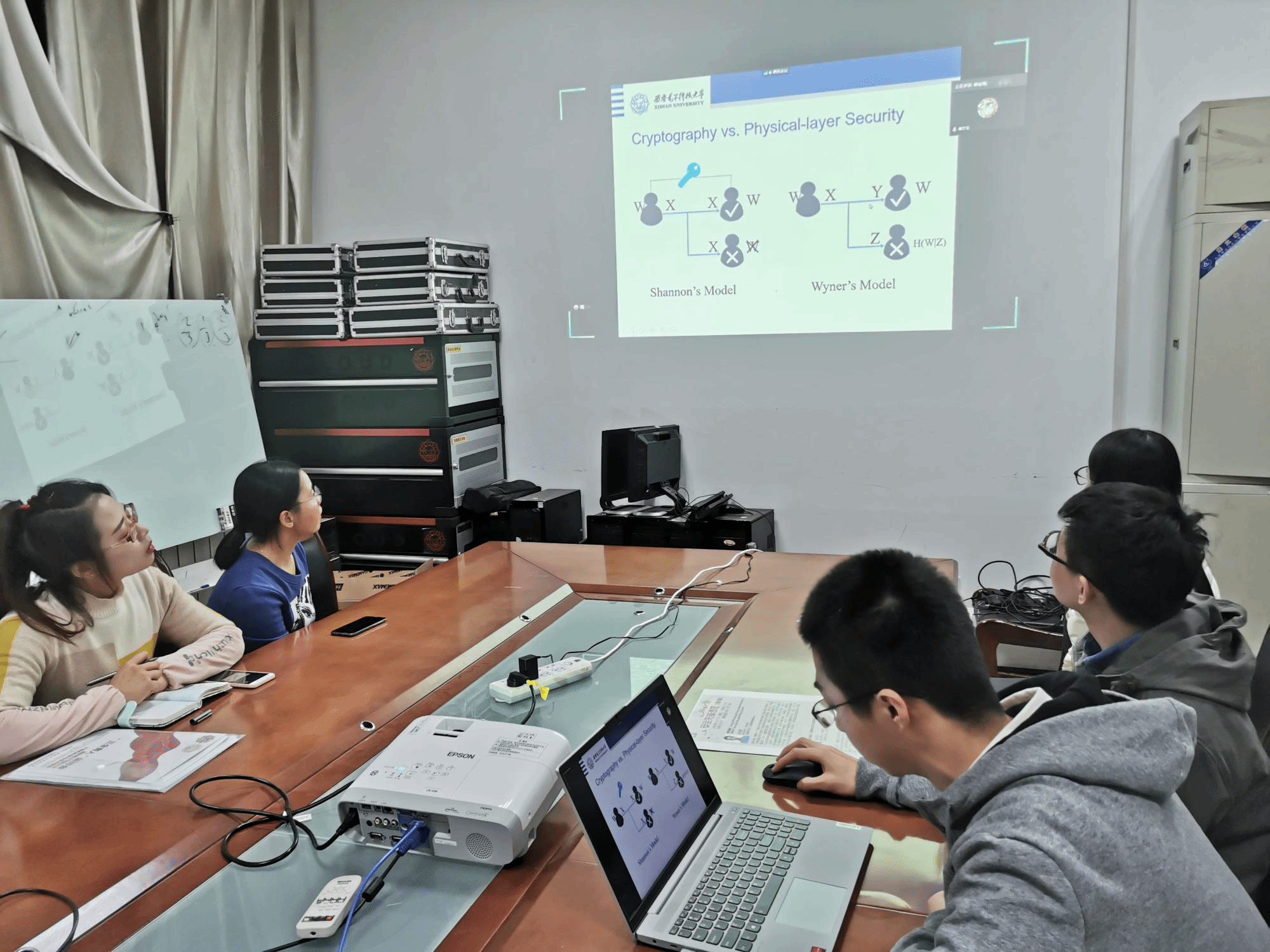 来自计算机网络与物联网工程研究所本硕博师第一联合党支部的博士研究生赵双睿同学,以保密能量效率为主题,具体介绍了一种低复杂度波束成形设计方案。硕士研究生崔志浩同学以云计算的概念为切入点,介绍了云安全典的迫切需求和行业痛点,介绍了研究所保护云计算安全的完整产品体系和研究所已取得的一些成就等。在问答环节,线上线下的听众积极提问,与报告人开展了积极有效的互动交流。