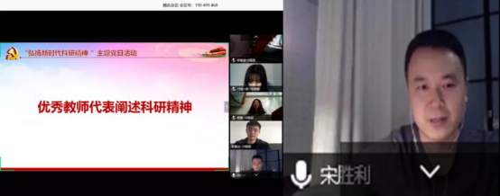 软件工程系主任、软件工程系党支部书记宋胜利老师谈到,作为一名教师、作为一名党员,在合适的时间,利用自己的特长发挥自己的作用,为疫情防控做一些贡献,这是一件光荣的事情。随后,宋老师就科研精神在多个维度展开分享交流。首先,宋老师提醒各位党员要深刻理解科学研究的本质和内涵是要不断探索、追求新知,将自己的科研能力服务于国家经济社会发展。其次,宋老师分享了关于科学研究的三个层次:第一个层次是基础研究,主要注重于新理论和新原理的探讨;第二个层次是应用研究,将在应用研究中获得的技术方案运用到解决实际问题中;第三个层面是开发研究,将在应用研究中已获取的实际技术方案运用到问题的解决中。最后,宋老师以计算机和软件相关专业为背景,阐述了科学研究的三个层次如何与每位党员的实际科研工作相结合,取得更好的科研成果。