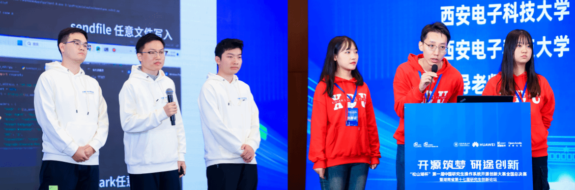 大赛吸引了107所研究生培养单位的277支队伍踊跃报名参赛,最终有83支队伍晋级全国总决赛,其中我校队伍6支,在晋级全国高校中排名并列第3。大赛分4个赛道进行,分别是OpenHarmony开源社区赛事、OpenEuler开源社区赛事、OpenKylin开源社区赛事以及OpenAnolis开源社区赛事。23日大赛开幕后,我校6支队伍参与了分组答辩,其中我校beat365亚洲体育官方网站NSS攻击组、一斤鸭梨队脱颖而出,与国防科技大学、上海交通大学、南京大学、华东师范大学等8支一等奖队伍共同进行公开路演与答辩,近30位业内专家严格评审,智慧与技术交锋,角逐冠亚季军殊荣。最终,我校NSS攻击组获全国亚军。本次也是我校首次参赛即获一等奖两项(含全国亚军一项)、二等奖一项、三等奖三项,一等奖数量并列全国第一的好成绩。
