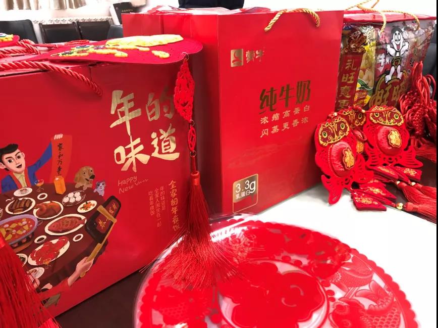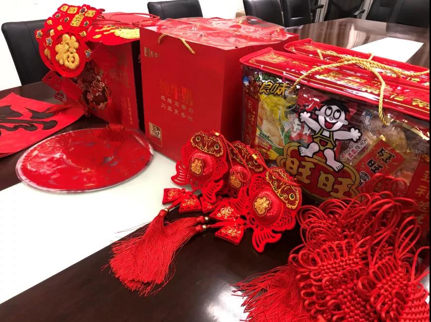 春节礼包不仅包含了牛奶、坚果、零食等健康食品,还有中国结、窗花、福字挂件、牛年贴纸等春节装饰品,希望各位学子在留校过春节期间健健康康、快快乐乐!新的一年学业有成、牛气冲天!