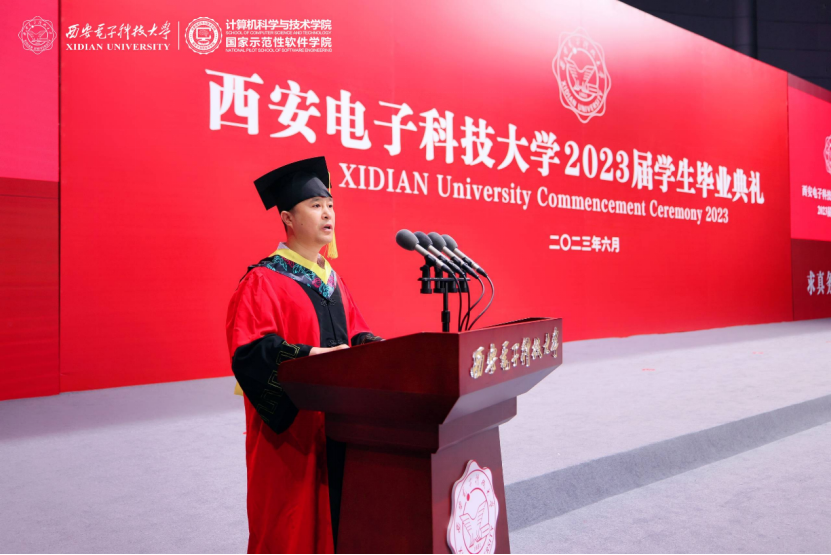 学院执行院长崔江涛教授深情寄语2023届毕业生,他谈到“艰难困苦,玉汝于成”,同学们在疫情期间克服困难云端学习,积极投身志愿服务,在挑战中自律坚守,在变化中适应突破,以青春“小我”战胜疫情大考;他谈到“行而不辍,未来可期”,beat365亚洲体育官方网站(beat365亚洲体育官方网站)聚焦国家软件行业重大需求,充分发挥在计算机与软件领域的办学特长和优势,围绕关键基础软件和嵌入式软件两个重点领域,强化科教结合、产教融合,开展西电特色的高层次拔尖创新人才培养,落实为党育人为国育才。他对同学们提出三点希望,第一是不忘初心,勇担使命,积极响应国家之需、人民之盼,像老三系学长们一样,把个人理想同祖国前途和民族命运紧密联系,与新时代同向而行;第二是直面挑战,崇善求真,始终追求人生的本真、守护精神的家园、探索未知的世界;第三是执着坚守,追求卓越,勇立时代潮头,向计算机领域“卡脖子”关键技术发起冲击,成长为实现中华民族伟大复兴的中国梦的最强主力军。最后,崔江涛寄语毕业生以使命精神自省,以求真精神自强,以卓越精神自立,努力做到不负青春、不负理想、不负时代、不负人民。