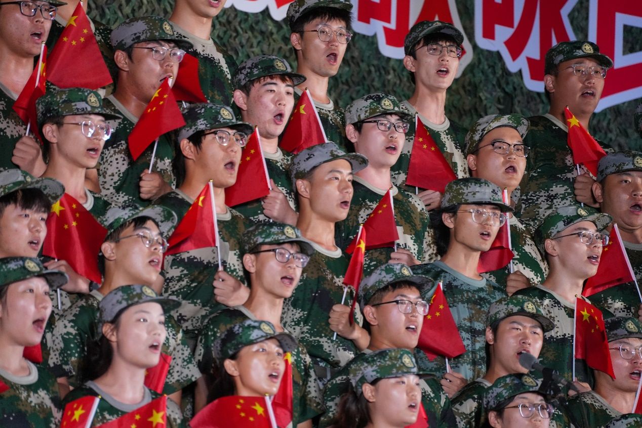 这来之不易的宝贵成果并非一朝一夕所就,而是由五团合唱团的努力共同浇灌而成。自晚训的第一次排练开始,五团合唱团在学校文工团的指导和辅导员的陪伴下刻苦练习,不断精进。在反复的练习之中,五团合唱团不仅提升了演唱水平,也增强了团队的凝聚力和向心力,更加增强了同学们的团队意识和荣誉感,让大家在这次宝贵的军训体验中收获更多认同与情谊。