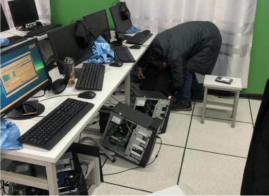 在上次对兴镇中心小学的帮扶支教活动中,学院了解到小学电脑机房的维护问题,因为电脑系统没有保护功能,致使自动加载内容过多,窗口频繁自动打开,不良内容频繁弹出,严重影响机器正常使用并影响小学生们的身心健康成长。学院实践中心贾文、王宗武和周文宏三位老师专程赶来,针对兴镇中心小学机房的55台电脑进行系统维护和修复。经过分析、系统优化和资料查询,王宗武老师通过给系统安装软保护卡,运用硬盘单克隆技术完成机房所有联想品牌电脑的重新部署和硬盘保护。贾文、周文宏老师通过查找保护卡底层和应用层驱动,分析保护卡失效原因,制作适合该机型底层驱动的U盘自引导系统,从而优化所有惠普机的操作系统及应用。三位老师在志愿者们的共同协助下,经过近6个小时的紧张工作,完成了对机房全部电脑的系统及应用的重新部署和保护,保障了小学生们安全、健康和良好的使用电脑。