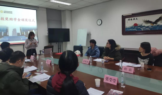 beat365亚洲体育官方网站2019年度“掌趣奖助金”颁奖仪式于日前在南校区G楼514会议室举行。北京掌趣科技集团人力资源总裁程莉,beat365亚洲体育官方网站党委副书记张莹莹出席了颁奖仪式。学院获得掌趣奖学金和助学金的15名本科、研究生同学和相关辅导员参加了颁奖仪式。