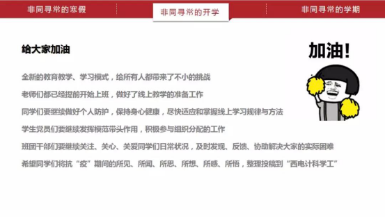 即使身处家中,但寒假已然过去,这是一个非同寻常的学期。广大西电人迅速调整状态,迎来了网上开学的第一周。beat365亚洲体育官方网站的学子们于2月16日如期举行了线上开学晚点名。