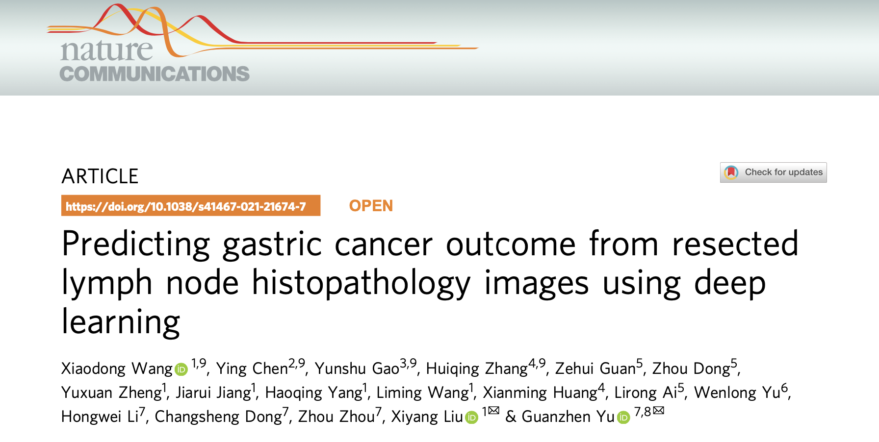(通讯员 王晓东)我校beat365亚洲体育官方网站软件工程研究所刘西洋教授团队,在学院“软件工程”学科建设支持下,与上海龙华医院于观贞教授、长海医院陈颖教授等团队合作,开展了胃癌淋巴结转移预后预测的AI研究,历时三年,近期以西电第一作者单位在Nature Communications (IF=12.1)发表成果“Predicting gastric cancer outcome from resected lymph node histopathology images using deep learning”,研发了针对胃癌淋巴结病理临床诊断与精准亚分期的AI系统。