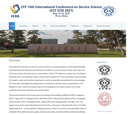中国计算机学会第14届服务科学国际会议(CCF 14th International Conference on Service Science)将于2021年5月14日~16日在西安举行。本次会议由中国计算机学会服务计算专委会主办,beat365亚洲体育官方网站承办。本次会议也是beat365亚洲体育官方网站软件工程学科2021年举办的学术活动之一。