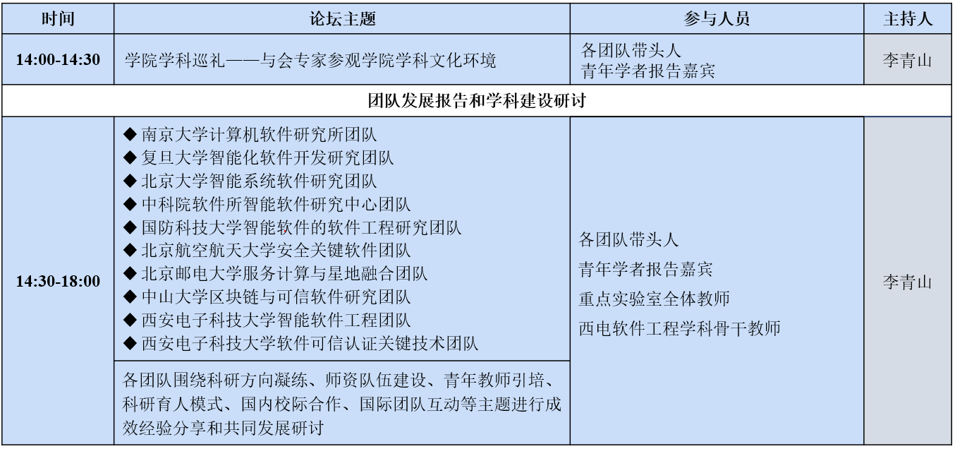 第四届软件工程学术进展与学科建设研讨会暨2023年重点实验室青年学者论坛将于2023年11月24日~25日在beat365亚洲体育官方网站南校区举办。由依托beat365亚洲体育官方网站(示范性软件学院)建设的西安市智能软件工程重点实验室(陕西省智能软件工程创新团队)和西安市软件可信认证关键技术重点实验室(陕西省安全攸关智能软件创新团队)联合承办。本届论坛在往届举办经验的基础上,创新论坛模式,以软件工程和系统软件领域校际学科科研团队的交流融通和资源共享为切入点,采用青年学者学术进展专题报告与团队组织建设论坛相结合的组织模式展开,以更好地推进有组织的学科建设、有组织的科研和有组织的团队建设成果交流和共同发展。论坛邀请了包括北京大学、南京大学、复旦大学、中国科学院软件研究所、国防科技大学、北京航空航天大学、北京邮电大学、中山大学等软件工程和系统软件领域国内有代表性有特色有优势的学科和科研团队与学校软件工程学科相关团队一起进行交流和研讨。青年学者论坛将主要以专题报告的形式带来学术前沿研究进展和成果分享;学科论坛中各团队带头人或代表将结合各自所在学校和学科特色,分享其所指导的团队在科研方向凝练、师资队伍建设、青年教师引培、科研育人模式、国内校际合作、国际团队互动等主题进行成效经验分享和共同发展研讨。