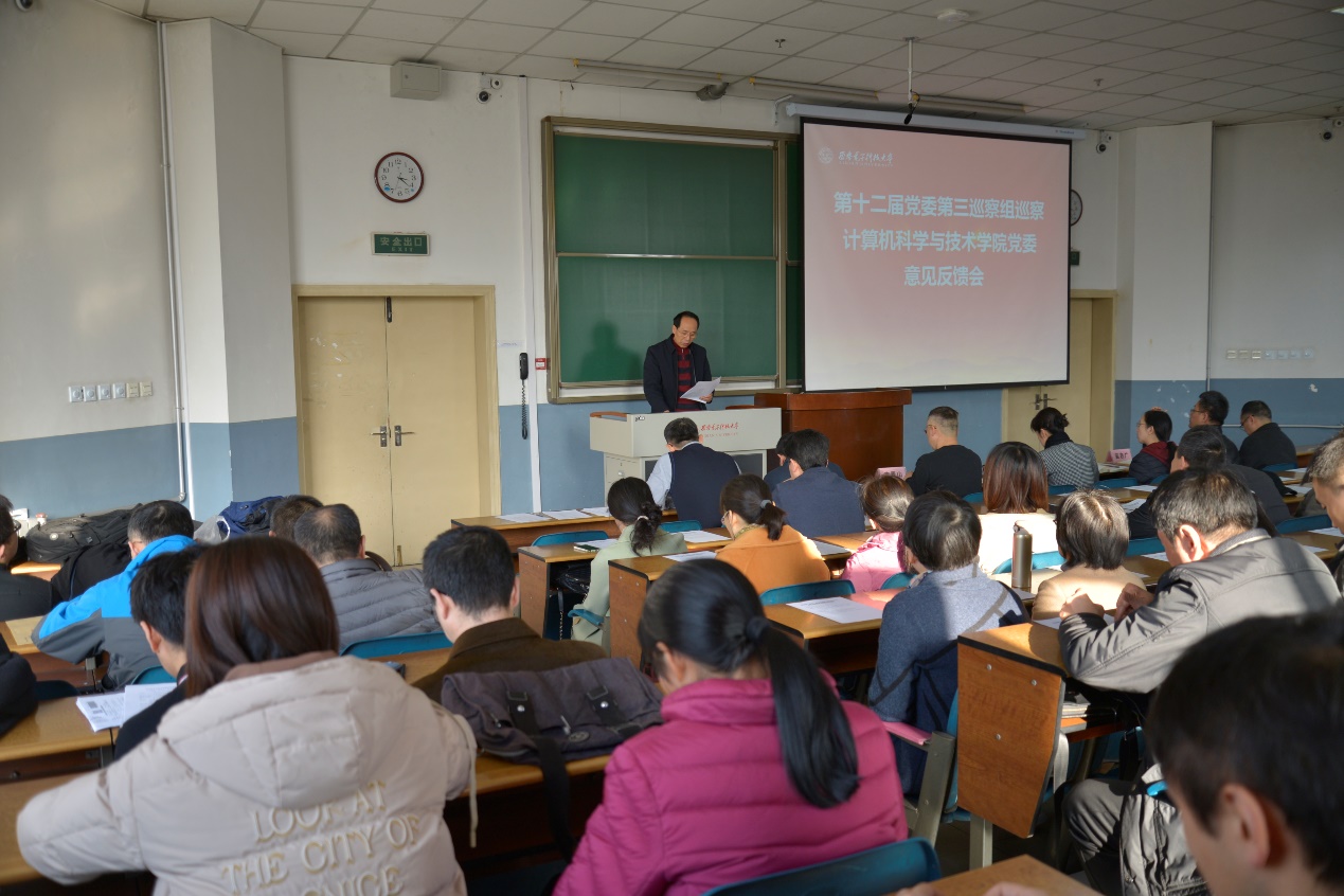 (通讯员  同榛)12月4日下午,学校第十二届党委第二轮第三巡察组巡察beat365亚洲体育官方网站党委意见反馈会在北校区阶梯教室505召开,校党委副书记、纪委书记、巡察办主任任应坤,巡察组组长吴秀霞,校巡察工作办公室相关人员,计科院全体党政领导班子成员与学院教职工代表参加了会议。会议由beat365亚洲体育官方网站执行院长崔江涛主持。