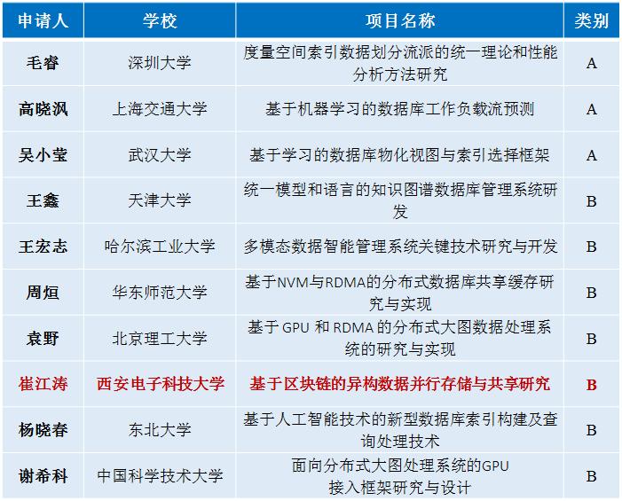 附:2019年CCF-华为数据库创新研究计划中选项目名单