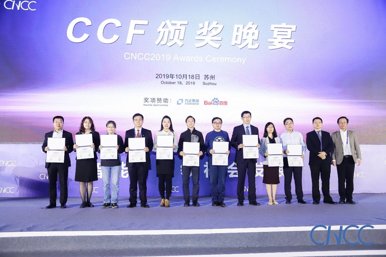 (通讯员  彭延国)2019年10月17日至2019年10月19日,中国计算机大会(CNCC)在苏州举行。期间,为表彰计算机科学领域专家取得的成绩,特在2019年10月18日隆重举行了CCF颁奖晚宴,并为“2019年CCF-华为数据库创新研究计划”立项项目团队颁发了项目证书。CCF-华为数据库创新研究计划是CCF与华为技术有限公司共同设立的校企合作及技术成果转化项目,资助国内高校/科研院教师在数据库领域开展创新研究,以推动国产数据库的技术进步和竞争力构建,培养数据库人才(特别是数据库系统领域人才)。