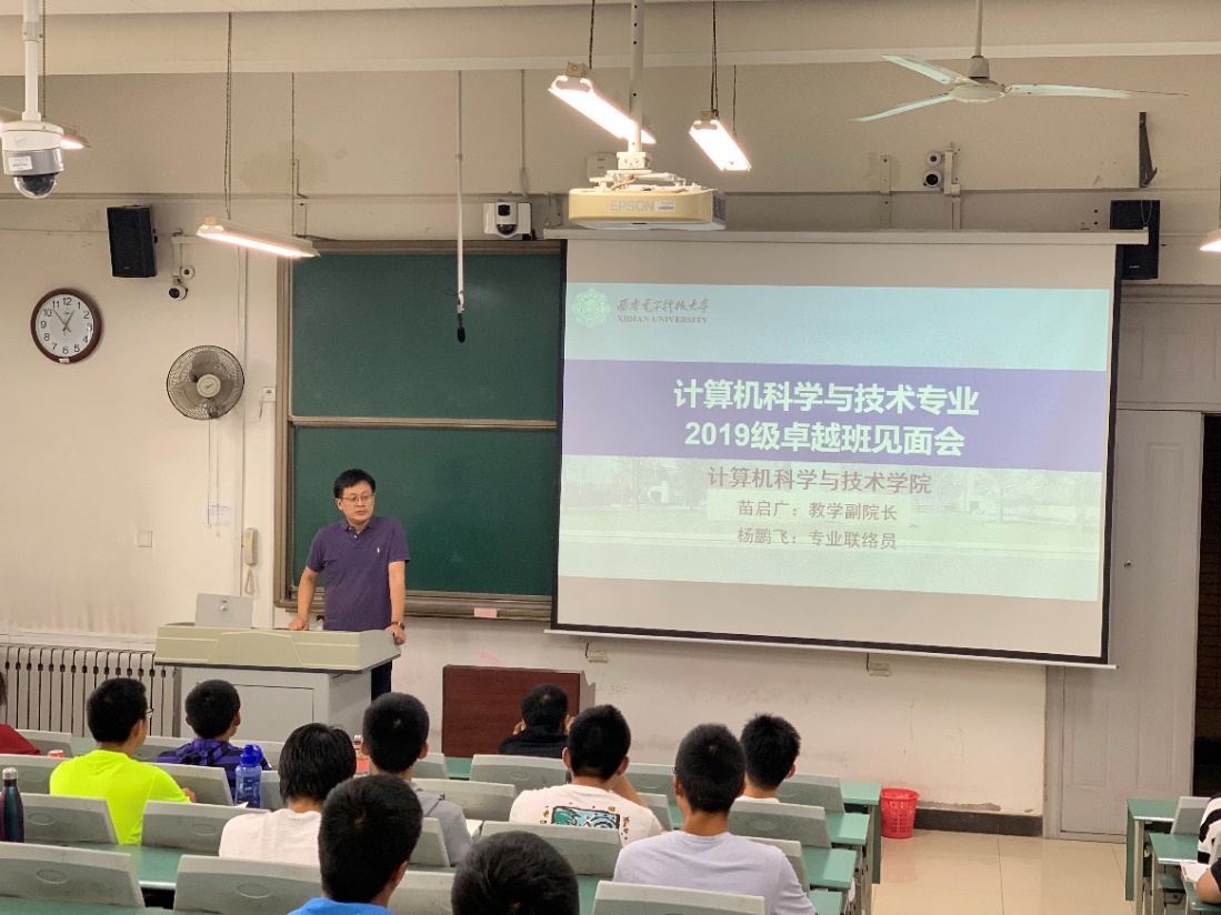 见面会开始,徐悦甡老师和杨鹏飞老师分别代表全院师生对19级卓越班新生加入计科院大家庭表示热烈欢迎,并对计科院卓越班成立的背景和过程做了简单介绍。“卓越2.0”是“卓越工程师教育培养计划2.0”实验班的简称,其对标新工科发展的基本要求,以学生为中心,应用人工智能、大数据等信息化手段,通过结构重构、流程再造、生态重构,构建教育教学深度融合的卓越工程师培养体系。此次计科院卓越班分两个方向、两个班共计80人,其中软件工程专业40人,计算机科学与技术专业40人,均是面向2019级全校新生,经过笔试、自愿报名、面试等环节层层选拔出来的优秀学生,是新生中的一批优质生源。