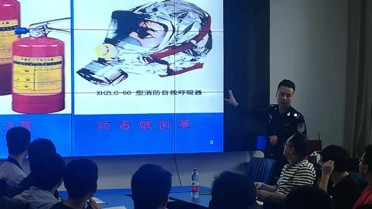 会上,张教官结合真实典型火灾事故案例,利用图像影像资料,系统讲述了消防安全的重要性。重点分析了火灾发生的原因以及各种隐患,火灾的预防和自救措施。常见的违规用电现象、安全生产管理的相关注意事项、防火六字方针、常用灭火工具的介绍和使用方法等。