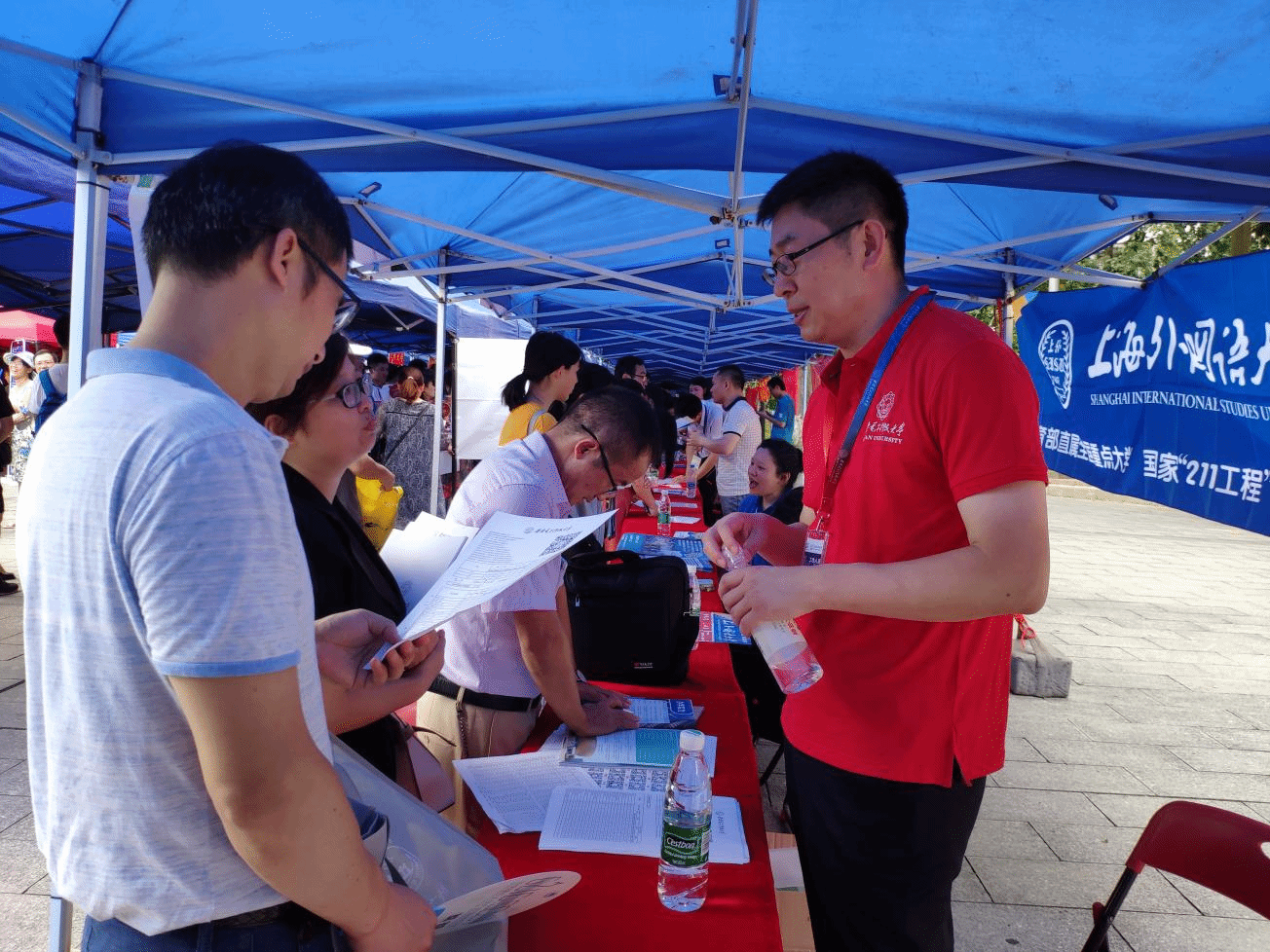 北校区步行街咨询会驻展团队有学院领导、各专业负责人及教师代表。6月24日参会老师有:苗启广、张莹莹、卫萌、徐悦甡、戚玉涛、马志欣、宋建锋、陈勉;6月25日参会老师有:崔江涛、向麟海、朱光明、王小兵、赵辉、谢琨、贾文。