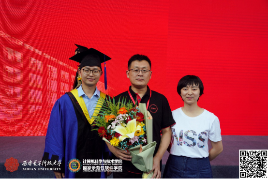 整个仪式在轻松、活泼的氛围接近尾声。最后,李青山教授给广大毕业生送去了深深祝福,他说:学院会一如既往的关注你们的成长,并积极支持你们的发展,希望大家在新的工作岗位上,再接再厉,传承西电品质,发扬西电精神!祝愿你们一路顺风,鹏程万里!