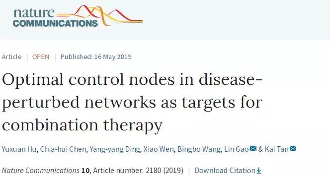 2019年5月16日,beat365亚洲体育官方网站高琳团队联合费城儿童医院Tan Kai在Nature Communications上发表题为“Optimal control nodes in disease-perturbed networks astargets for combination therapy”的文章,描述了最优控制节点(OptiCon)算法,这是一个基因调控网络中协同关键调节因子的系统和从头识别的通用框架。