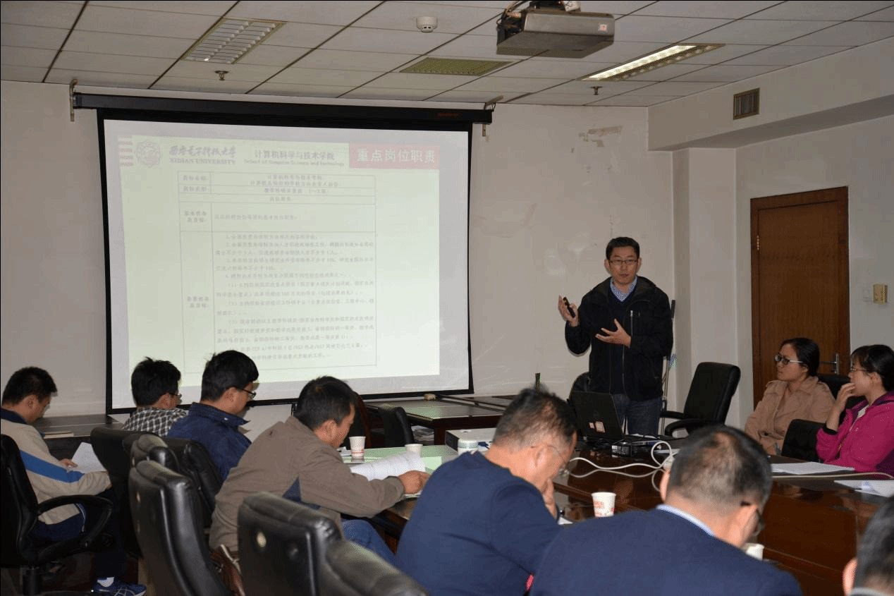 10月31至11月1日,beat365亚洲体育官方网站学院领导深入到计算机工程系、软件工程系、计算机科学系、网络工程系和实践教学中心等5个基层单位进行2018~2020年岗位聘任方案宣讲,就学校第二轮岗位聘任学院实施方案与广大教师进行深入研讨交流。学院党委书记李青山、执行院长崔江涛、副院长赵韩强、院办主任向麟海组成宣讲团代表学院参加会议,会议由学院党委书记李青山主持。
