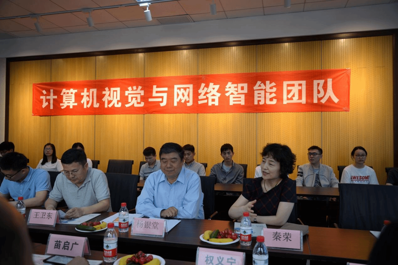 校党委副书记杨银堂首先代表学校对计算机视觉与网络智能团队表示祝贺。他指出,希望团队继续加强“师德师风”建设;希望在各位老师的指导下,师生互学互帮能够在专业基础知识、科研创新、计算机成果应用等领域取得更好的成绩;希望团队在苗老师的带领下,在各位老师和同学的共同努力下,不断践行“三好三有”理念,不断凝炼团队文化,形成一个更加乐观向上、朝气蓬勃的团队;最后,希望青年人要爱国、立志、求真、立行,加强政治学习,为国家和学校做出更大的贡献。