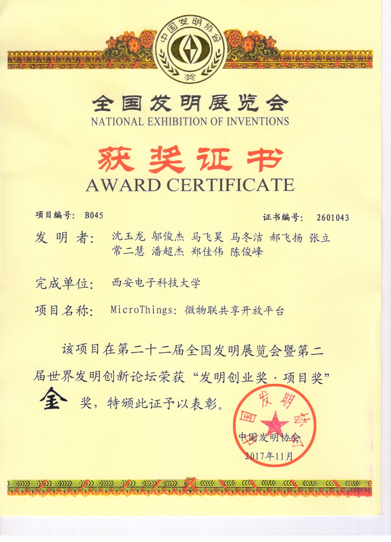 本次展览会除国内各省市、自治区及有关行业协会、解放军等单位参展外,境外有40个国家、国际组织派团参展,参展项目多达1200余项,其中我校推荐的由马建峰教授主导研发的“秦盾”云加密数据库系统和由沈玉龙教授主导研发的MicroThings:微物联共享开放平台2个项目均斩获金奖。
