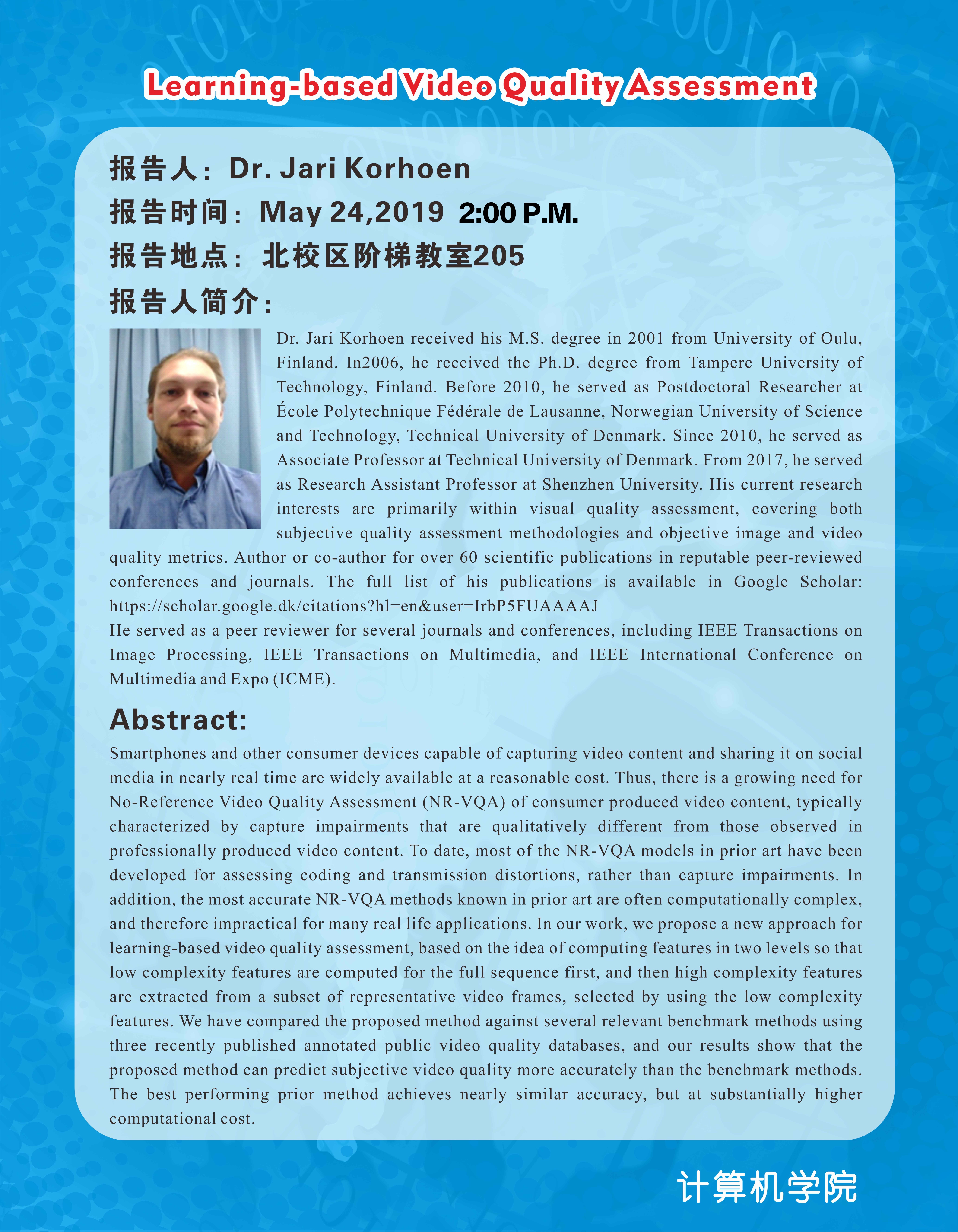 Dr. Jari Korhoen received his M.S. degree in 2001 from University of Oulu, Finland. In2006, he received the Ph.D. degree from Tampere University of Technology, Finland. Before 2010, he served as Postdoctoral Researcher at École Polytechnique Fédérale de Lausanne, Norwegian University of Science and Technology, Technical University of Denmark. Since 2010, he served as Associate Professor at Technical University of Denmark. From 2017, he served as Research Assistant Professor at Shenzhen University. Author or co-author for over 60 scientific publications in reputable peer-reviewed conferences and journals. The full list of his publications is available in Google Scholar: https://scholar.google.dk/citations?hl=en&user=IrbP5FUAAAAJ