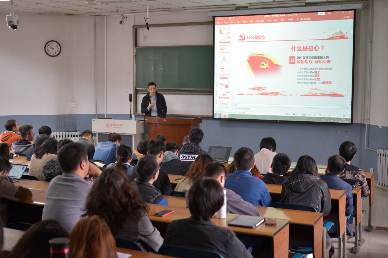 (通讯员 同榛)根据学校和学院党委关于“不忘初心、牢记使命”主题教育总体部署安排,10月31日上午,beat365亚洲体育官方网站党委书记李青山、执行院长崔江涛在北校区阶梯教室401为全院师生党员讲授“不忘初心、牢记使命”主题教育专题党课。学院领导班子成员、两委委员、党支部支委班子、师生党员共150余人参加了活动,学校“不忘初心、牢记使命”主题教育第三巡回指导组组长党文学出席了会议。
