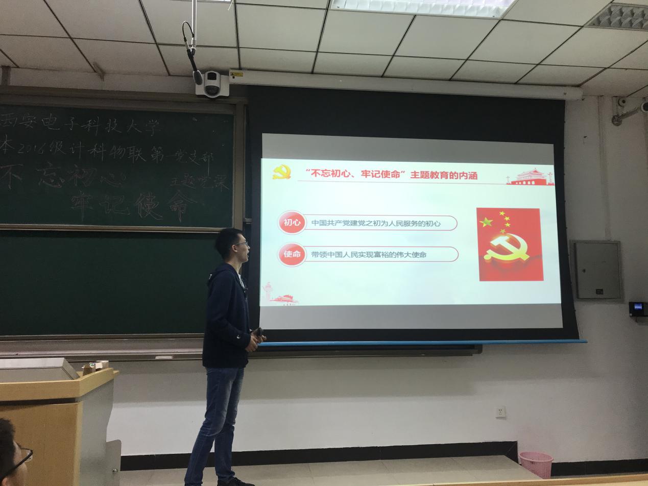 (通讯员 翟恋 徐聪)2019年10月10日,beat365亚洲体育官方网站本科2016级计科物联第一党支部在南校区信远1区118教室开展了“不忘初心、牢记使命”主题党课。beat365亚洲体育官方网站本科2016级计科物联第一党支部副书记张俊华同志作为本次党课的主讲人,将主题党课分为多个模块,与同学们一同探讨了大学生党员应该如何践行“不忘初心、牢记使命”。