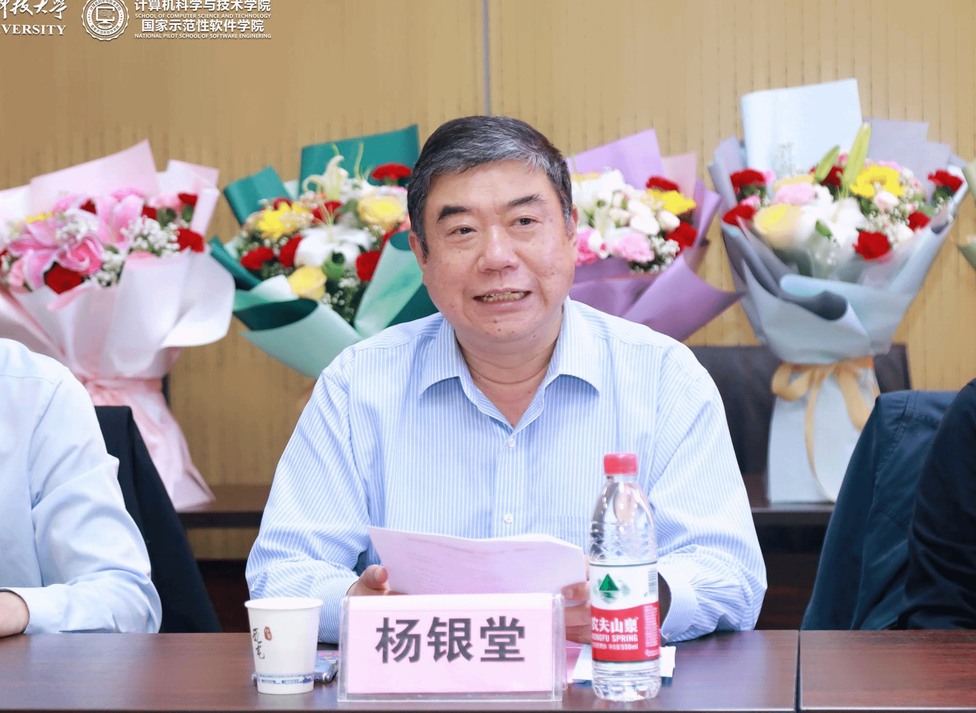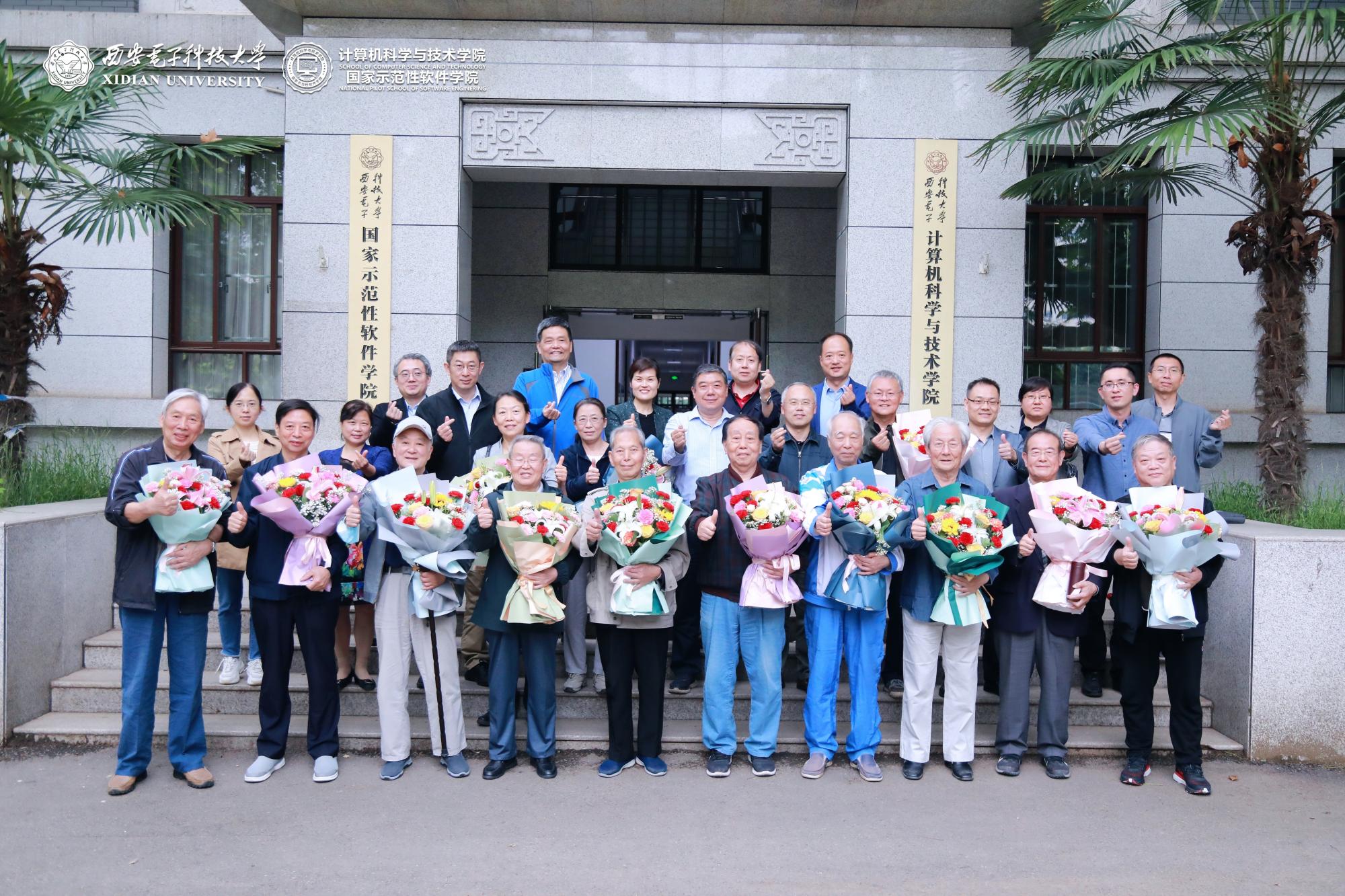 校党委副书记杨银堂、相关职能部门负责人、教师代表和学院班子成员向离退休教授代表及老领导代表献花,向他们表达诚挚祝福和衷心感谢!