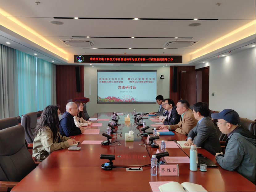 刘弢对西电计科院一行来访表示欢迎,介绍了厦大信息学院的建院历史、学科建设、师资队伍、科学研究、人才培养、产学研合作、校友工作等情况,着重讲述了信息学院在厦门大学这一文理见长的综合性大学中,在工科办学规律上的艰难探索和“简单、直接、高效”的学院文化的培育情况。他谈到,信息学院搬迁翔安校区,迎来了难得的发展机遇期,希望通过本次交流,借鉴西电学科建设经验、促进双方交流合作,进一步推动学院发展。