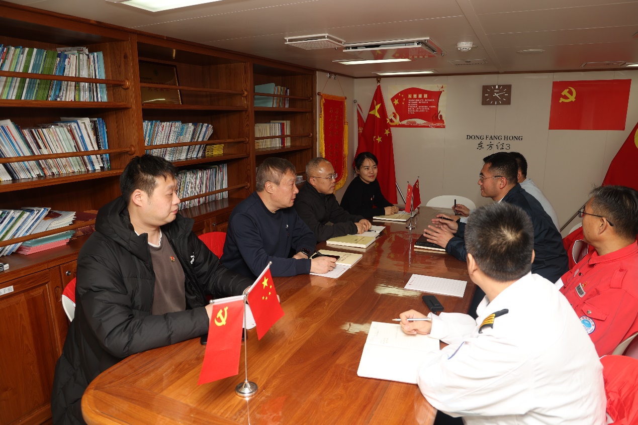 为进一步加强党组织交流,以党建引领双方多维度合作,在行进的“东方红3”科考船上,西电beat365亚洲体育官方网站党委书记李青山,青岛研究院副院长、产教融合本硕博师联合党支部书记向麟海与中国海洋大学船舶中心党总支书记、中国海洋大学船舶中心主任王毅,中国海洋大学研究生院副院长刘海波,东方红3船党支部书记王辉、船长于少杰等共同开展了党组织共建座谈会。