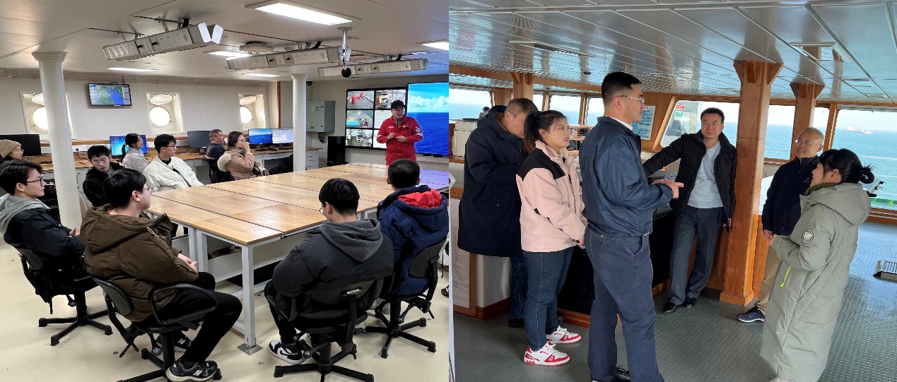 “东方红3”船是我国自主创新研发的新一代深远海综合科学考察实习船,也是目前全球静音科考船,可开展高精度的全海深和空间一体化的海洋综合科学考察。为落实德智体美劳“五育并举”,本次活动在思政教育的基础上引入实践教育,在科考船员的指导下学院一行通过学习海洋调查的基本知识、开展海洋安全应急演练、观摩海洋调查仪器设备实操,深入感受着大国重器上先进的海洋科考设施和海洋科考工作者身上朴素的爱国报国之行。